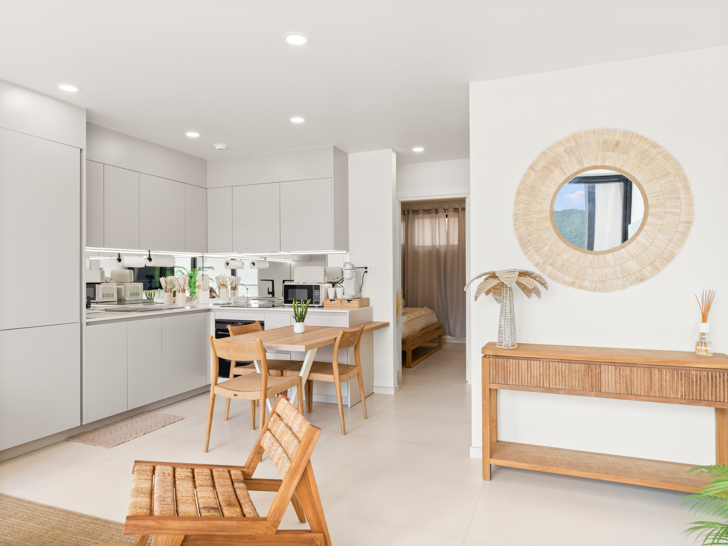 À l’intérieur, vous trouverez une chambre confortable pour des nuits reposantes, une salle de bain moderne et élégante, ainsi qu’un salon lumineux et spacieux conçu pour votre confort. La cuisine entièrement équipée vous offre la liberté de préparer vos repas à votre convenance, que ce soit un petit-déjeuner rapide ou un dîner romantique.
