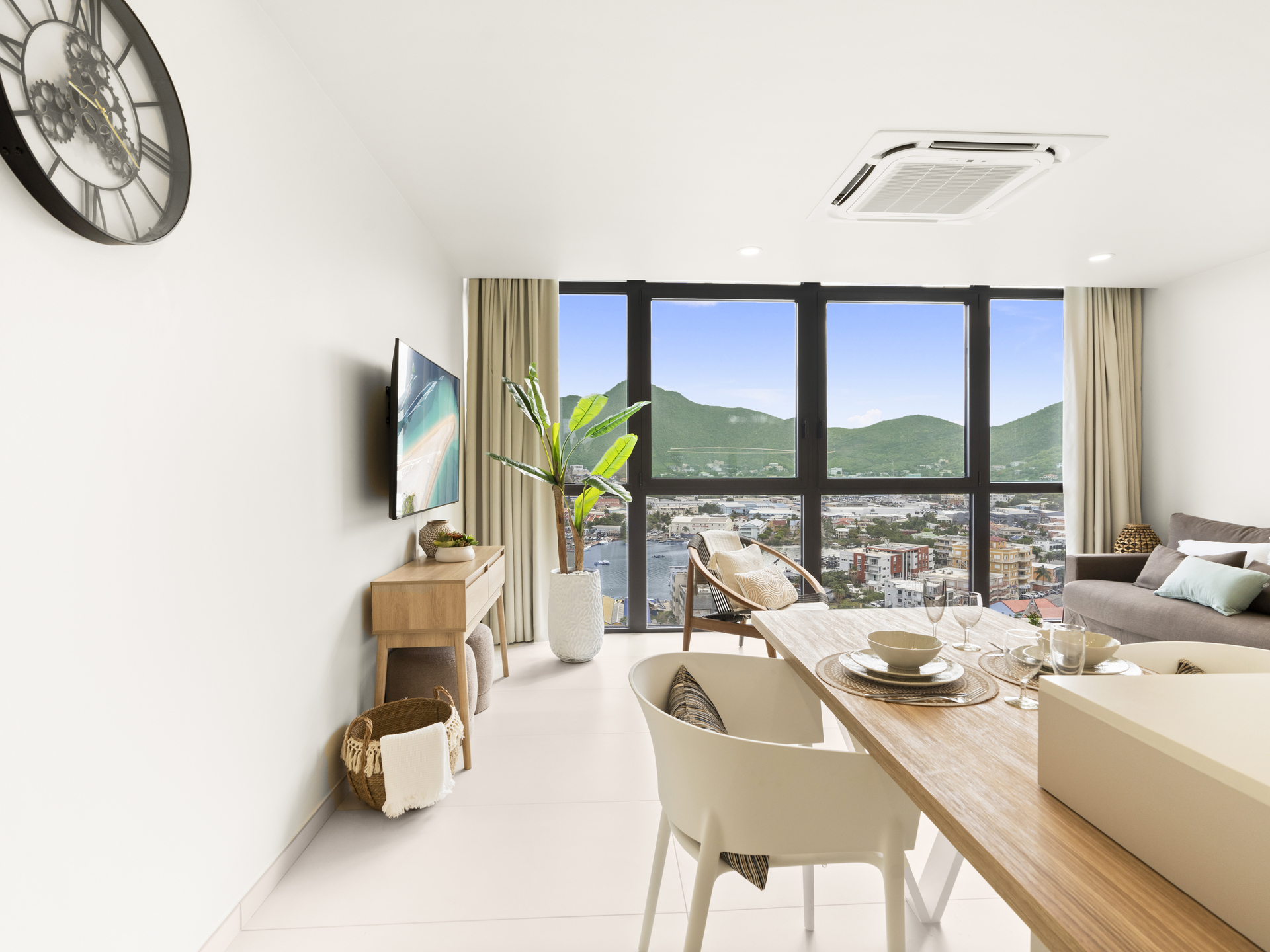 Cet élégant appartement d’une chambre et d’une salle de bain est situé dans le bâtiment C au troisième étage de The Hills Residence, offrant beaucoup de confort et une vue relaxante sur le lagon pour votre séjour à Sint Maarten.