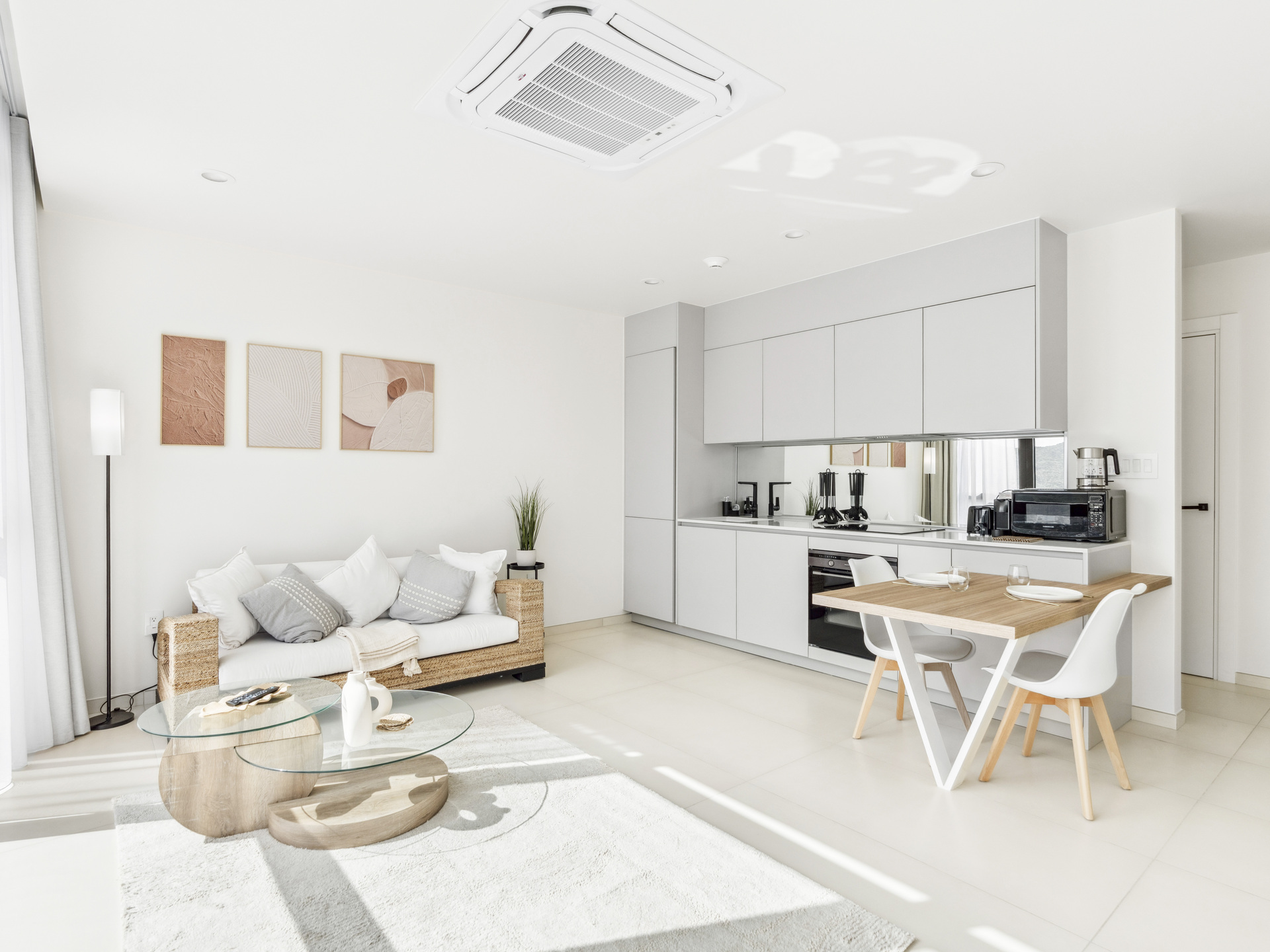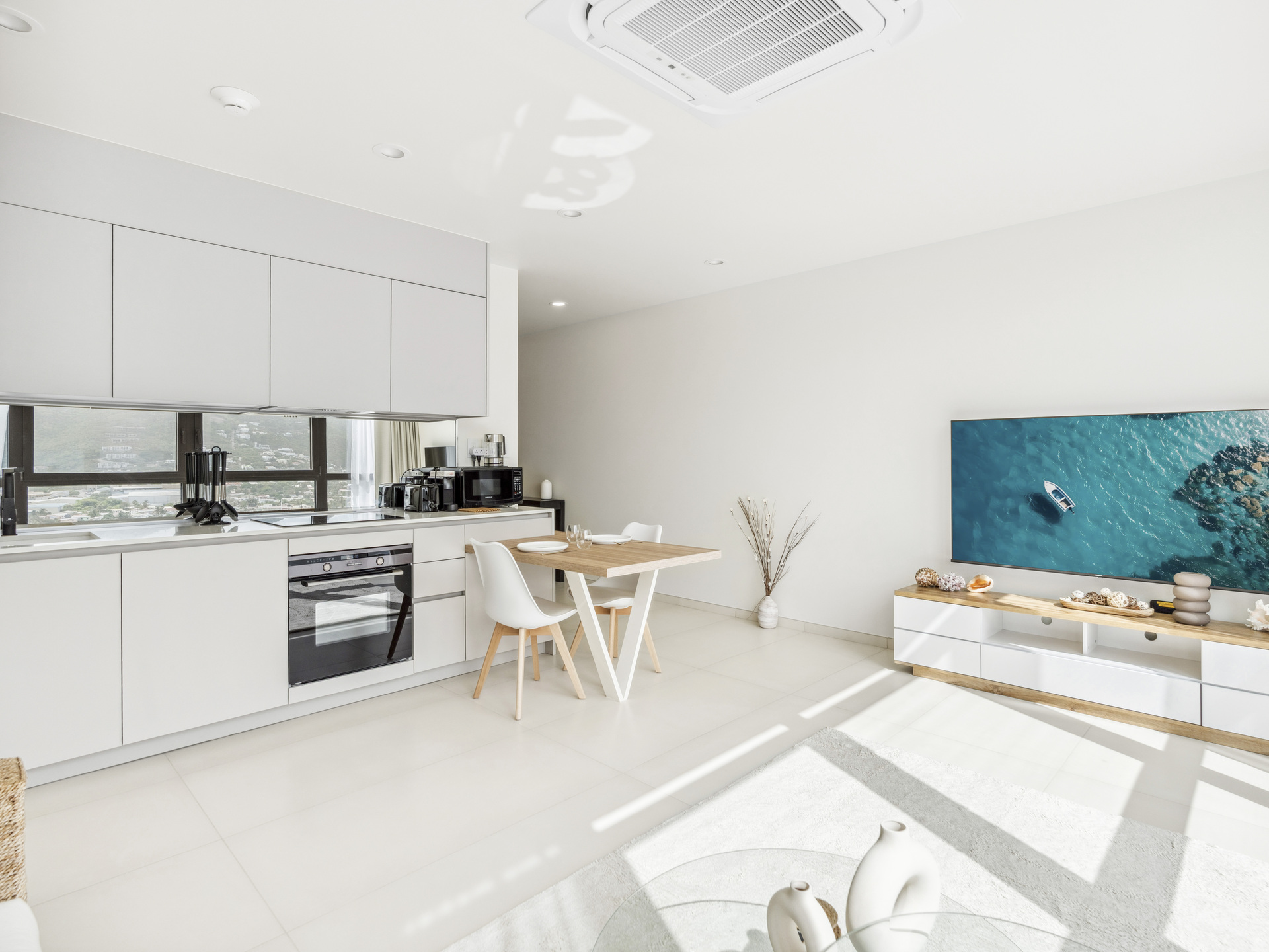 • Cuisine entièrement équipée avec réfrigérateur, four, lave-vaisselle, grille-pain et machine à café Nespresso