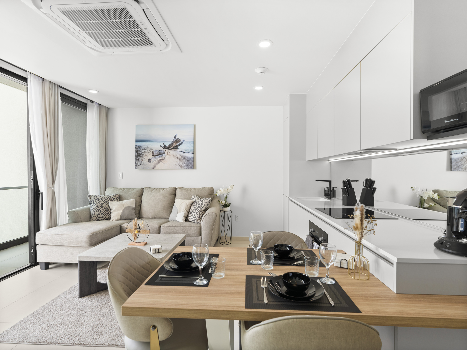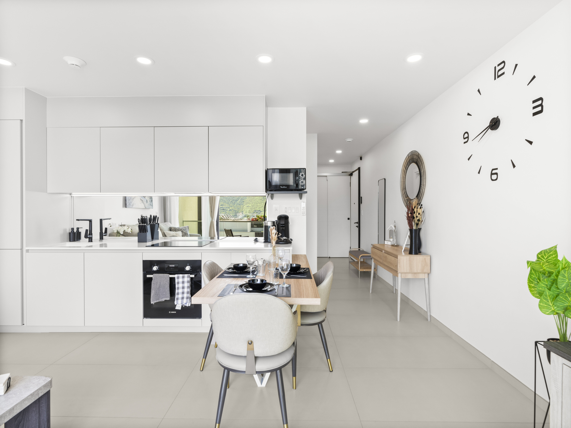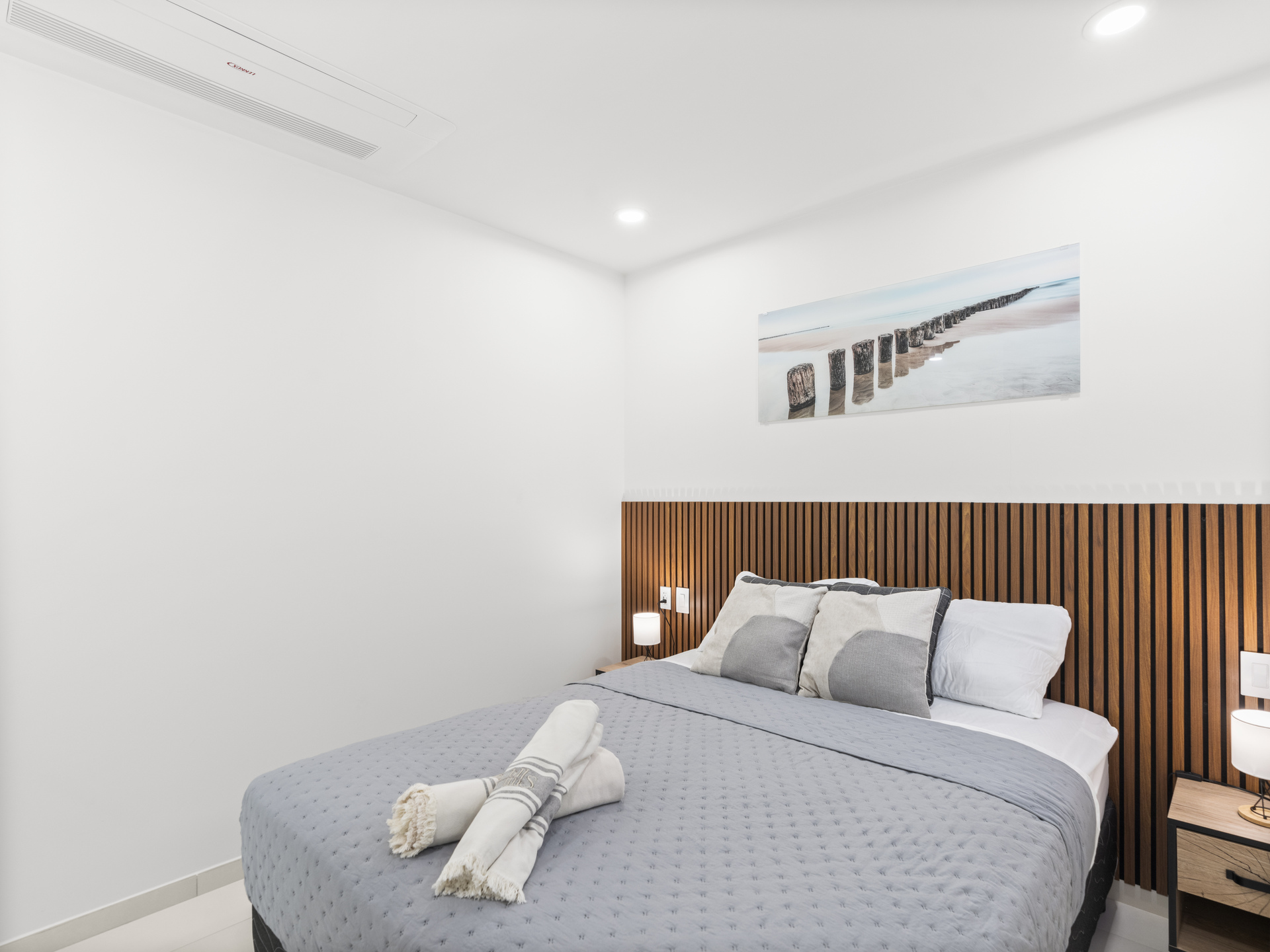 Découvrez l’appartement D414, une superbe suite d’une chambre et une salle de bain, située au premier étage du Bâtiment 4 de The Hills Residence. Élégant et accueillant, cet espace combine à merveille confort moderne et sérénité insulaire, parfait pour un couple ou un voyageur solo.