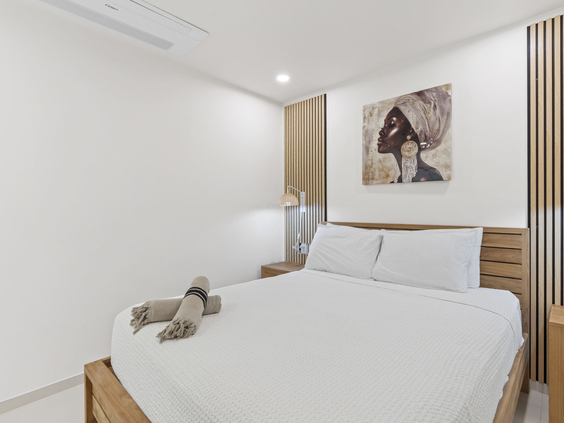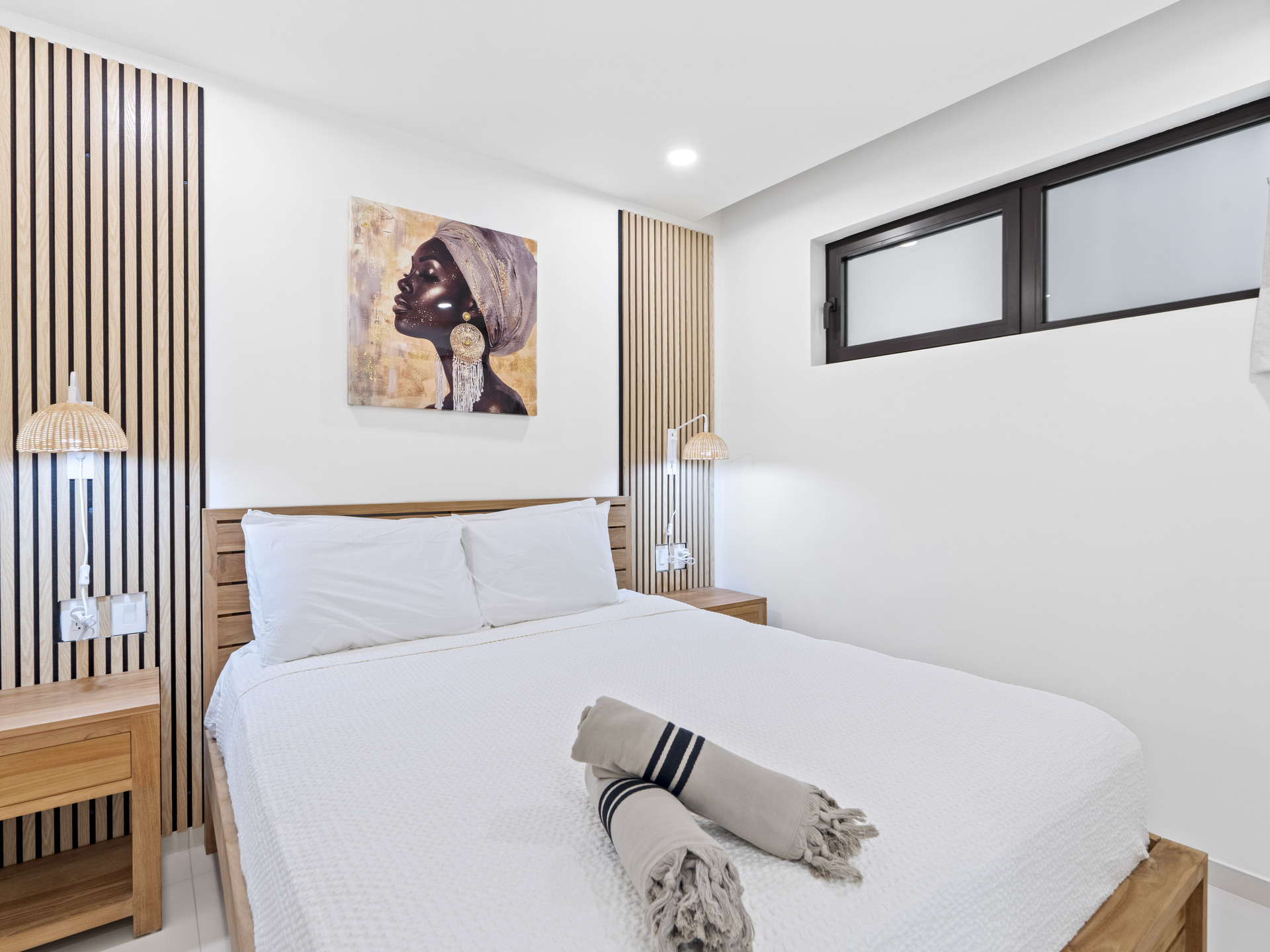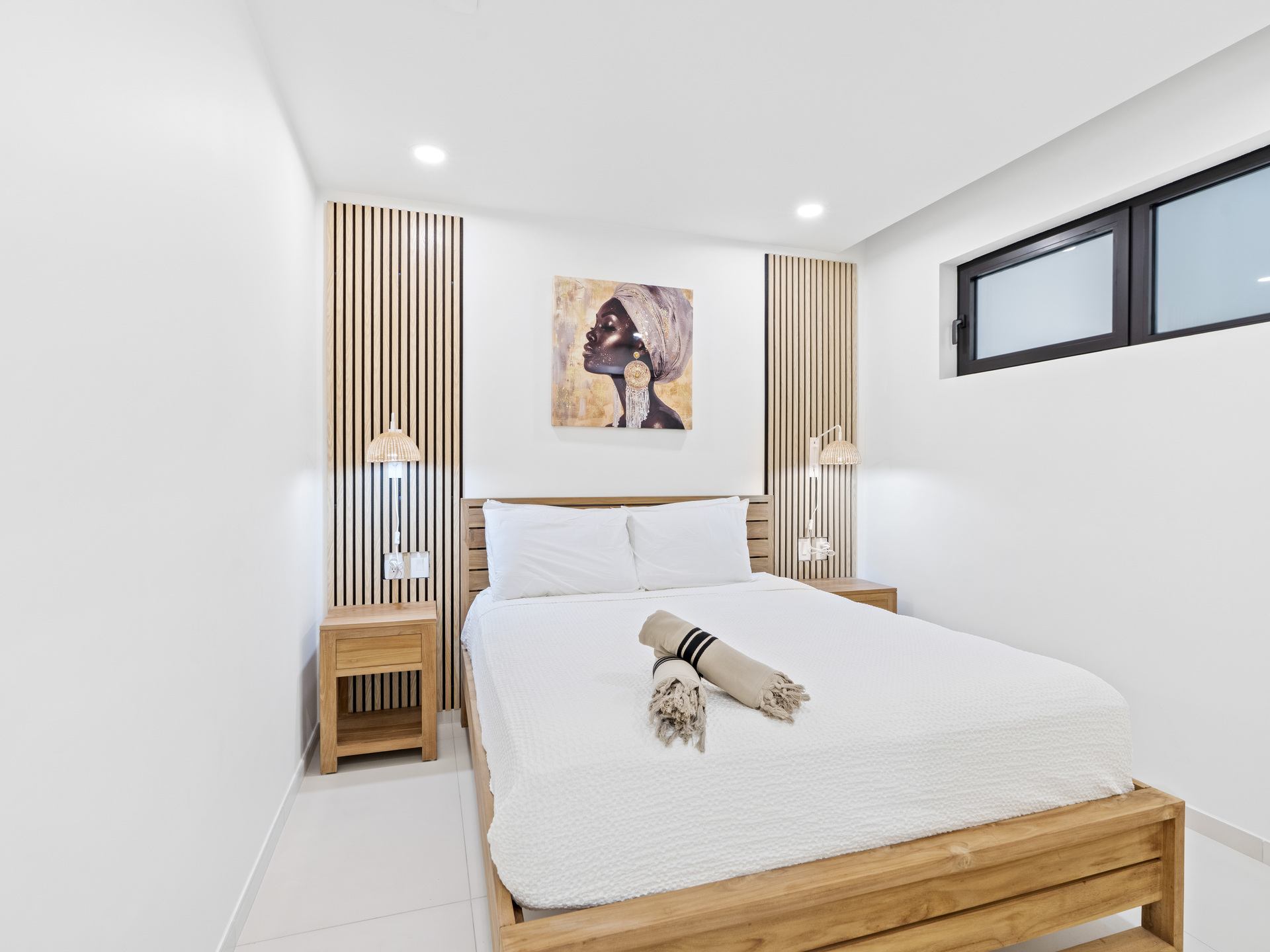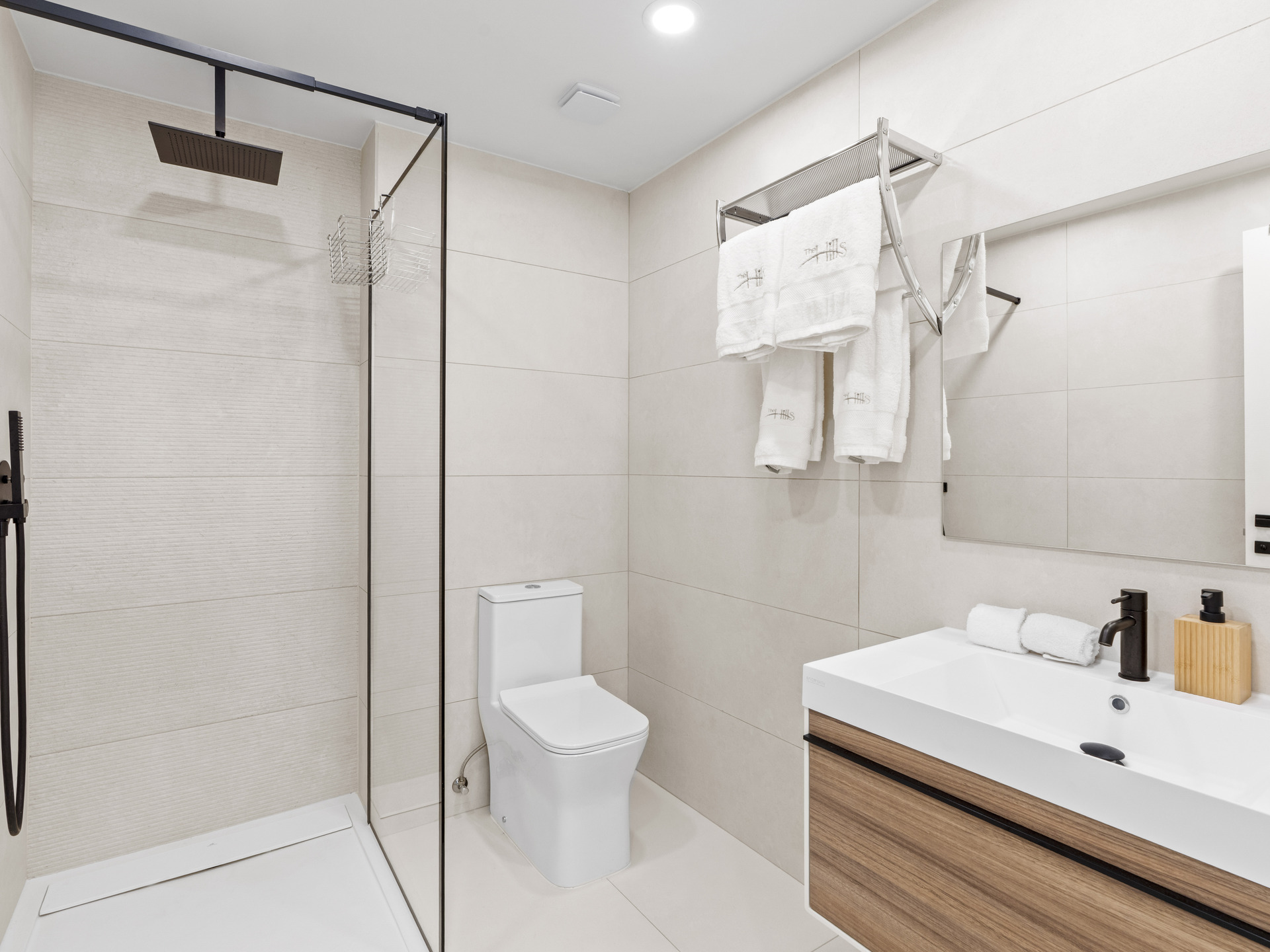 La cuisine moderne est équipée d’électroménagers haut de gamme, d’armoires élégantes et d’un vaste plan de travail, idéal pour préparer des repas à la maison. La chambre est un havre de paix conçu pour le confort, tandis que la salle de bain offre une atmosphère de spa avec des finitions élégantes et une luxueuse douche à effet pluie.