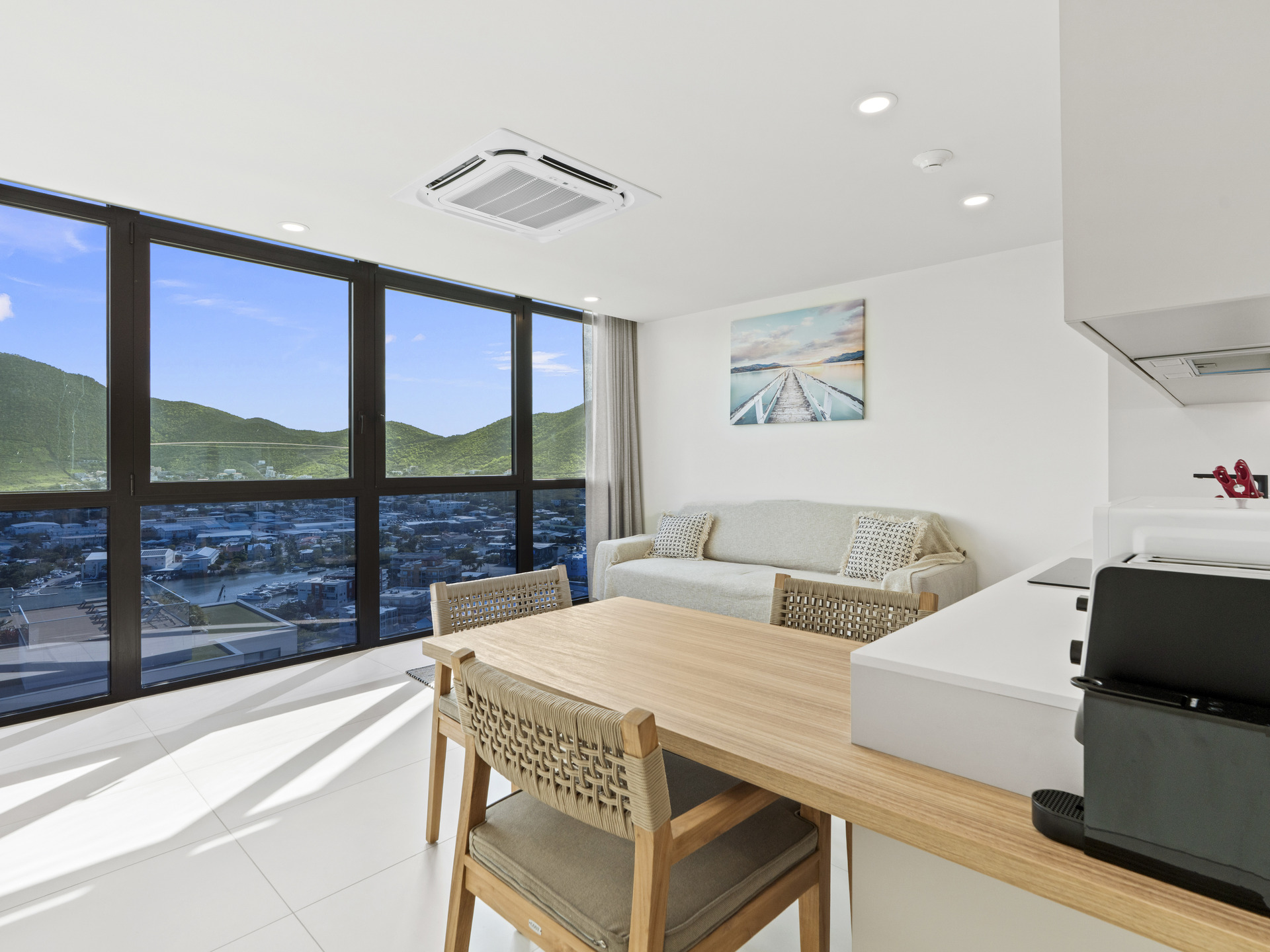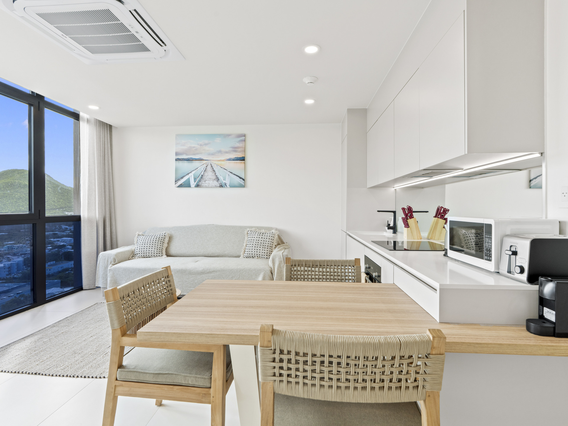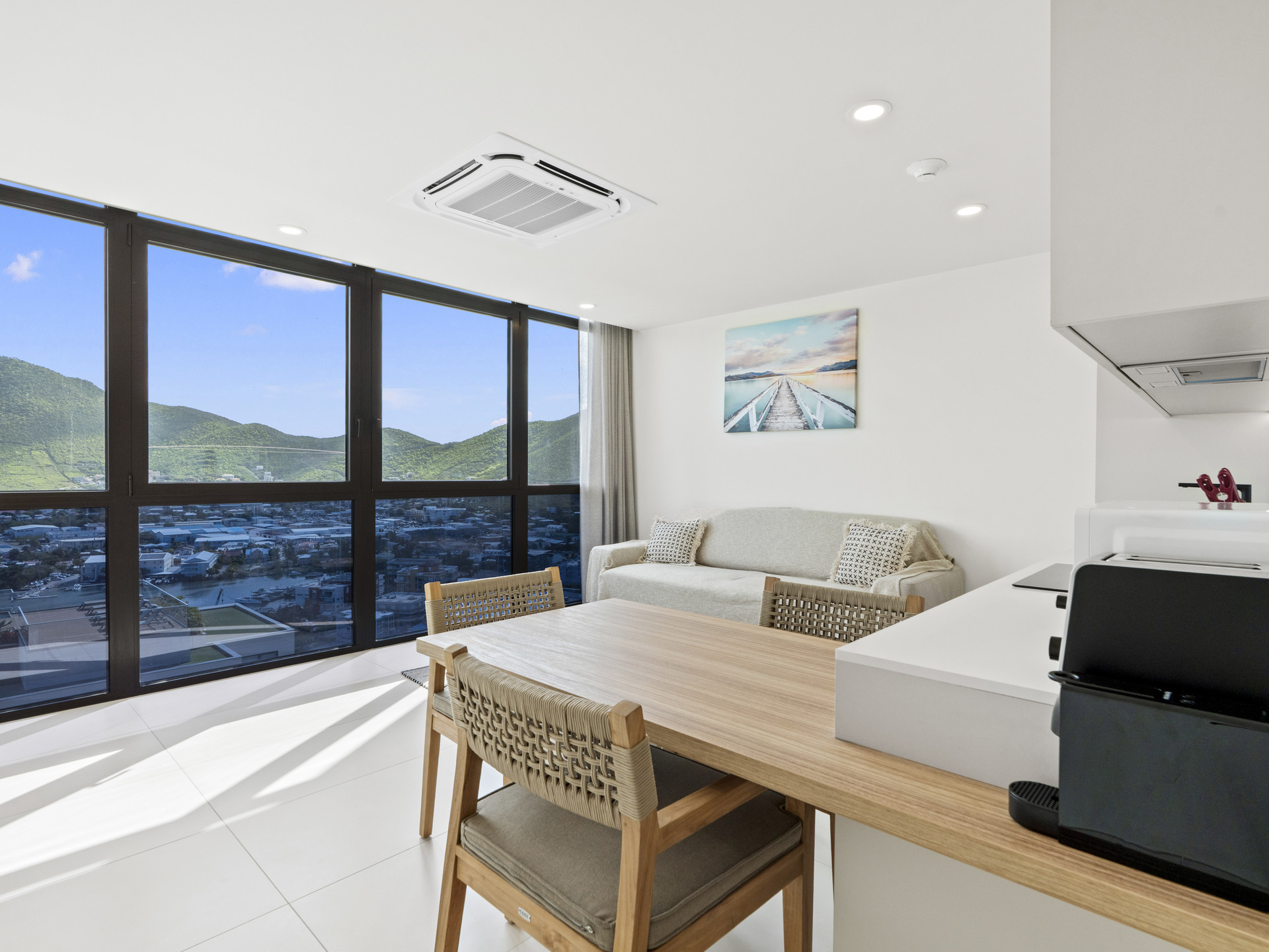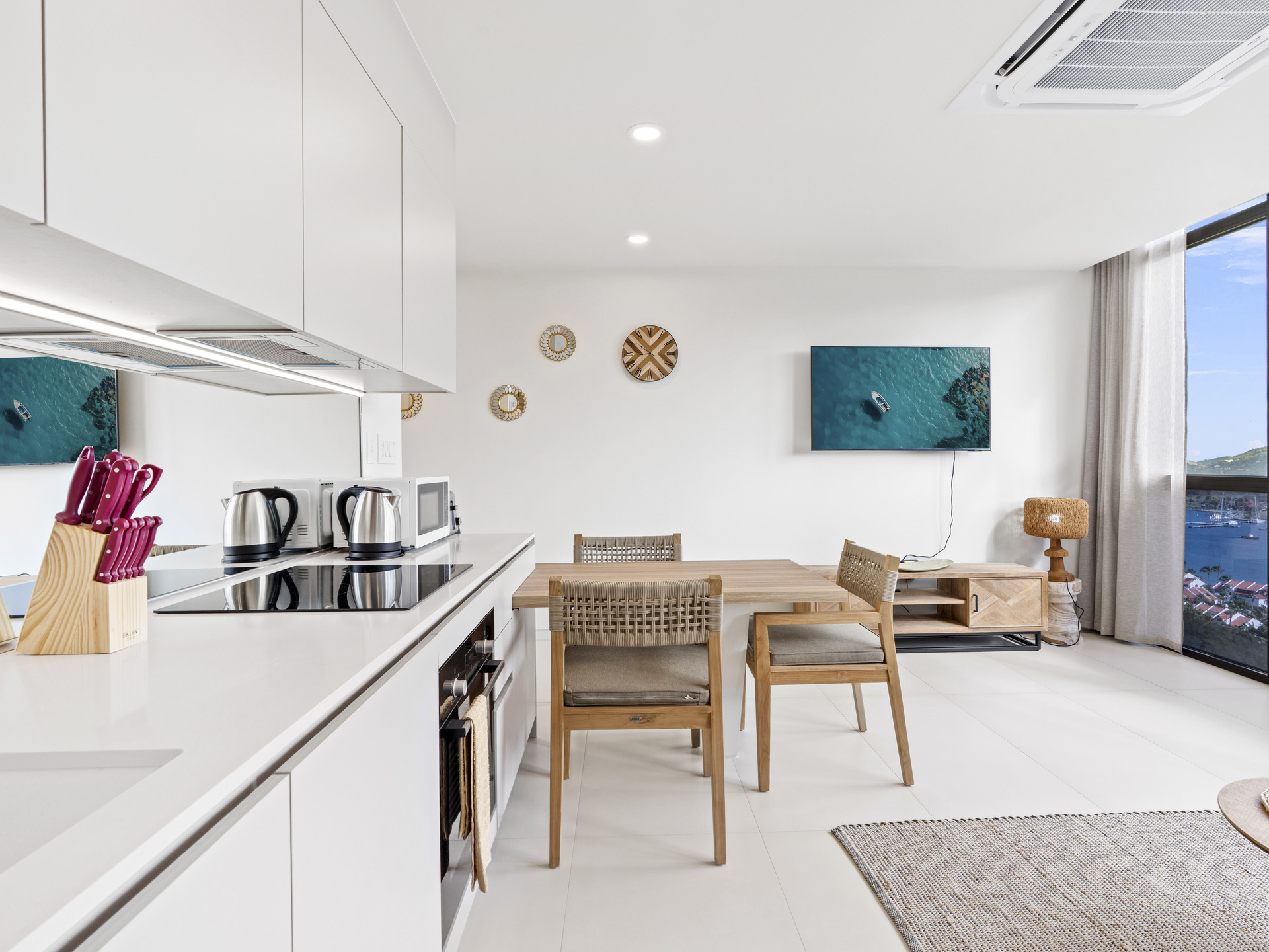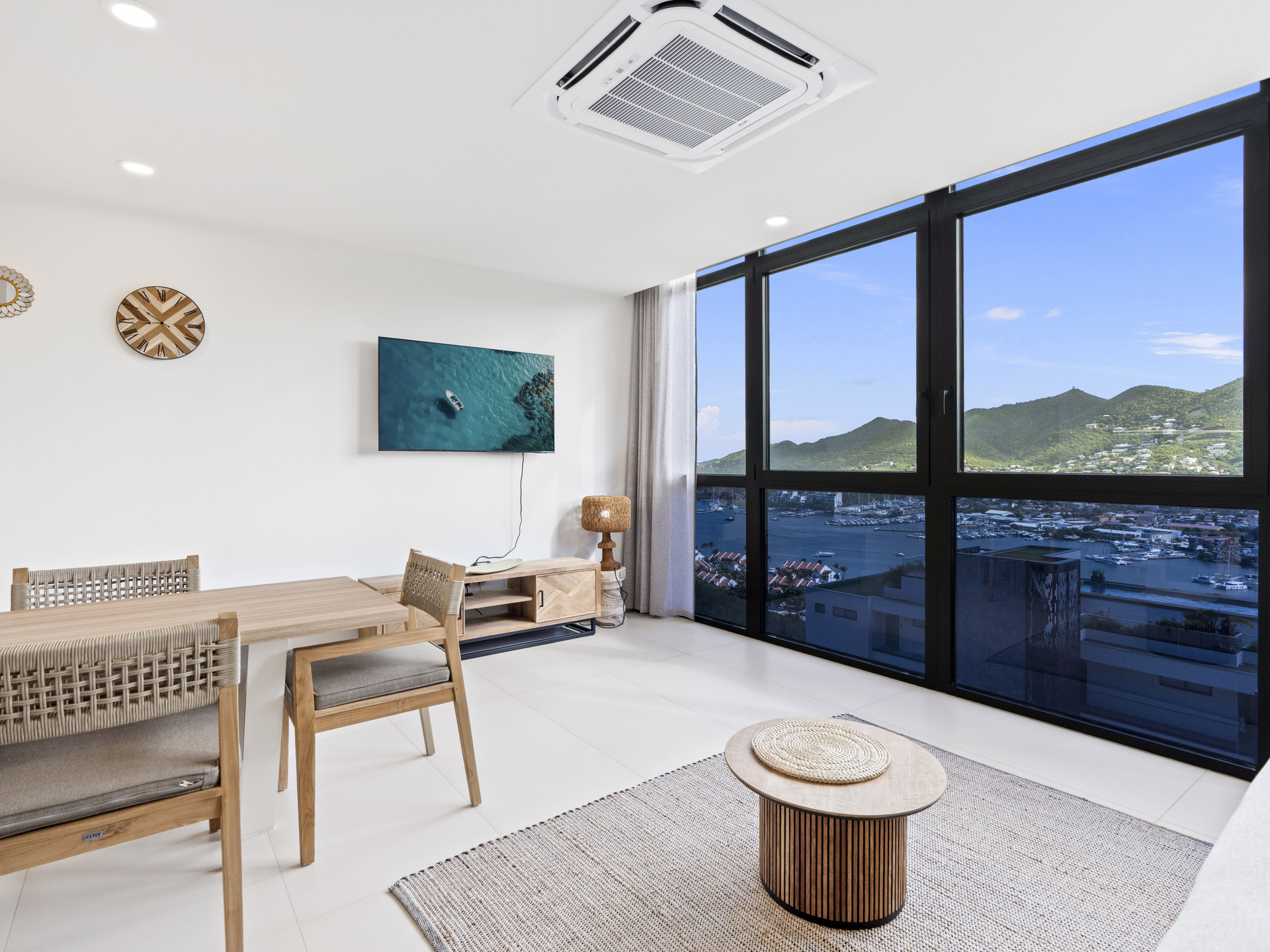 Perchée au 3e étage du bâtiment 4 , cette maison sophistiquée offre une vue spectaculaire sur l’ océan, Anguilla, le lagon et les montagnes verdoyantes environnantes , créant une expérience de vie sereine et luxueuse.