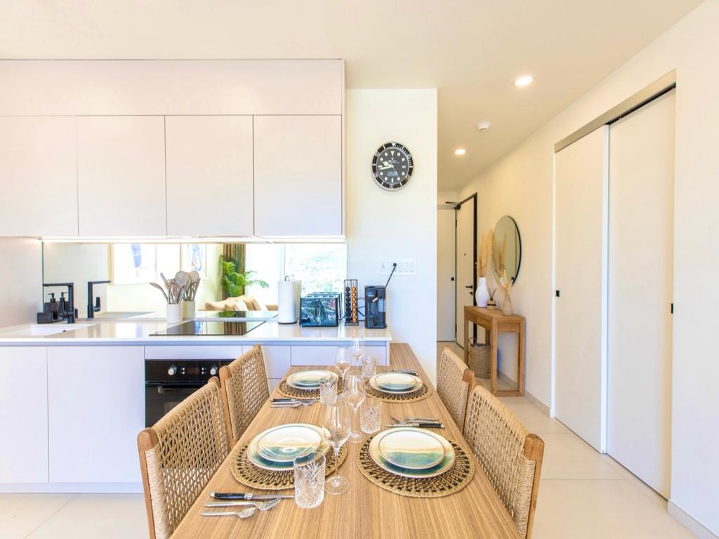 Avec une superficie impressionnante de 109,8m², ce condo spacieux est entièrement meublé et prêt à emménager. Chaque détail a été soigneusement pensé pour créer un environnement de vie chaleureux et contemporain, parfaitement adapté au style de vie caribéen. La décoration allie des éléments modernes à des touches chaleureuses, offrant une ambiance accueillante pour les propriétaires et les invités.