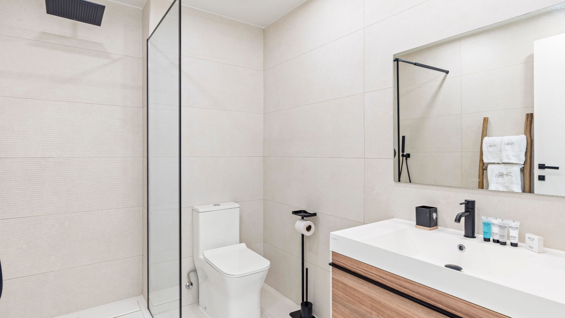 • Elegant Bathroom: Walk-in rain shower for a spa-like experience.