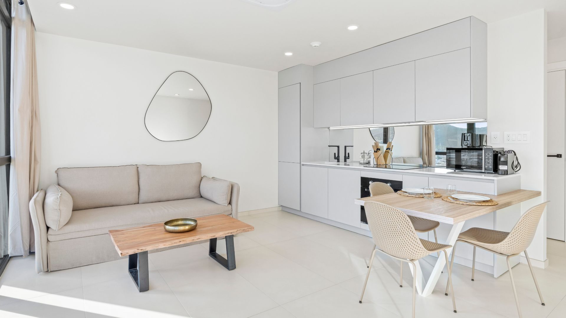 • High-End Features: Fully equipped modern kitchen with dishwasher, refrigerator, oven, stovetop, and Nespresso machine.